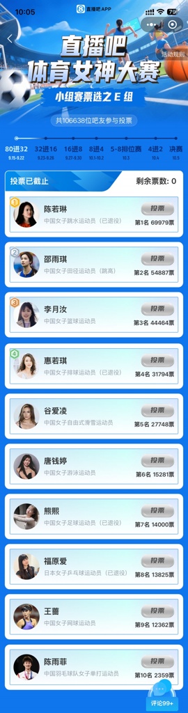 小组赛期间,您可以为所有小组的任何一位您喜爱的女神投票。