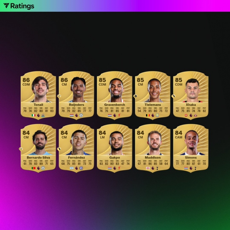 FC26官方英超中场评分榜:萨拉赫91居首,罗德里90、维尔茨89