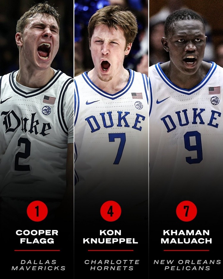 “蓝魔”杜克大学有3人进入前十: