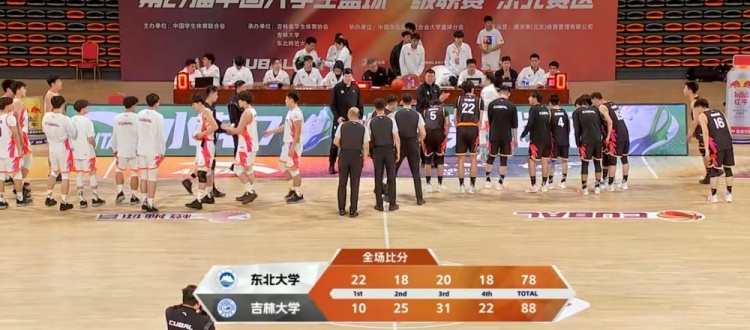 末节决战,双方展开对攻,王士铭和杨瑀璠联手带队追赶,段世镭延续火力帮助球队保持优势,吉林大学越战越勇将分差拉开到两位数,杨瑀璠篮下拿分,但吉林大学稳扎稳打牢牢占据场上主动,东北大学苦苦追赶无果。最终,吉林大学击败东北大学。