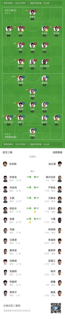 第15分钟,邓涵文右路传中,门前郑浩乾包抄打门被扑出,小禁区内图多列补射得手!武汉三镇1-0领先成都蓉城↓