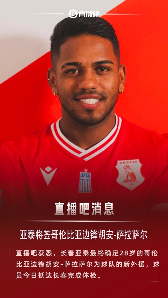 直播吧:长春亚泰将签28岁哥伦比亚边锋胡安-萨拉萨尔