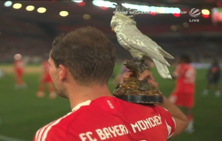 此役格雷茨卡为拜仁首发出战,帮助球队夺冠,赛后他肩上扛着鹦鹉饰品庆祝。