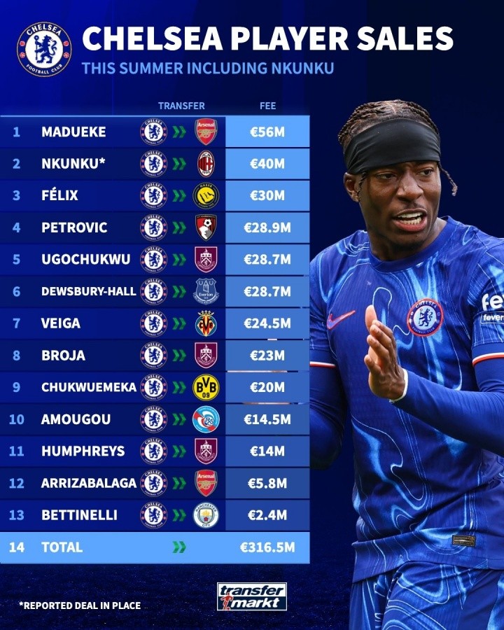 卖人的神切尔西超4000万卖恩昆库,今夏卖13人收入超3.16亿欧